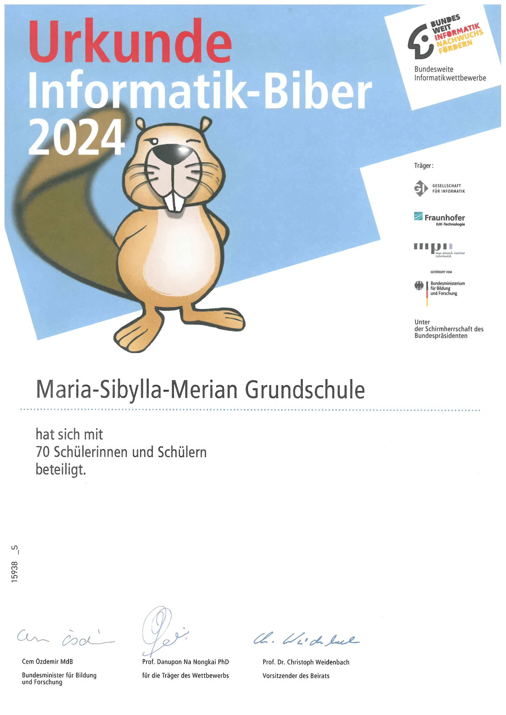 In diesem Jahr hat die gesamte Stufe 4 mit großem Erfolg am Wettbewerb Informatik Biber teilgenommen. 16 Kinder konnten hierbei landesweit einen 1. oder 2. Platz belegen. Wir gratulieren allen zu dieser tollen Leistung!