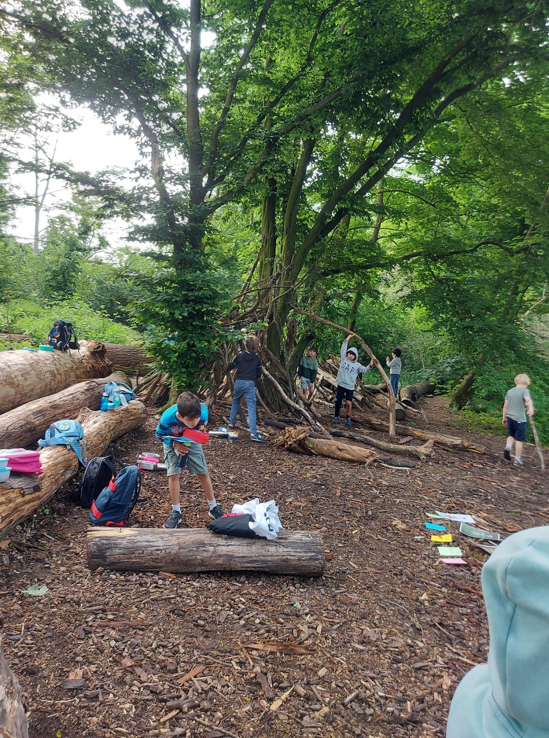 Wir haben Tipis gebaut, Bodenbilder gelegt, Sonnensterne gebastelt, Tiere und Blumen entdeckt und Waldbilder gemalt.